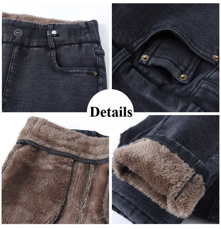 Crafted for both style and comfort, these jeans are designed to flatter your figure and keep you feeling confident all day long. Thickened fabric ensures your warmth. Whether you're dressing up or going casual, these jeans are your go-to choice.